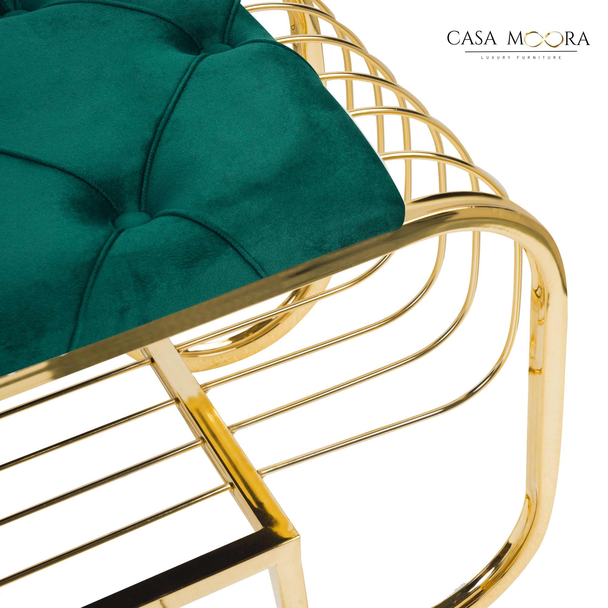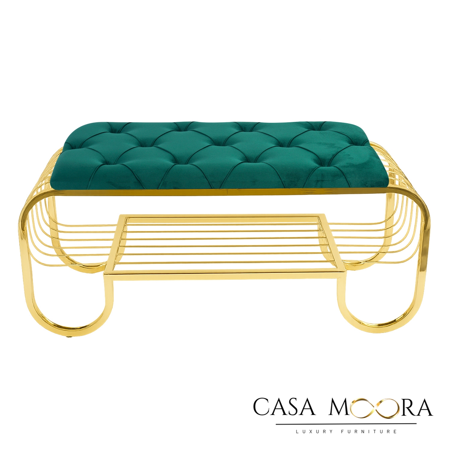 Bancheta cu pantofar -AURIU-VERDE SMARALD -catifea – Chesterfield